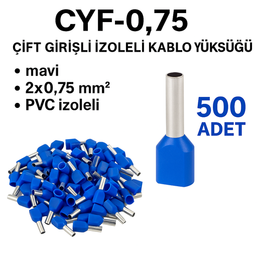 Tüm ayrıntıları görüntüleCYF-0,75 Çift Girişli İzoleli Kablo Yüksüğü Mavi 500 Adet