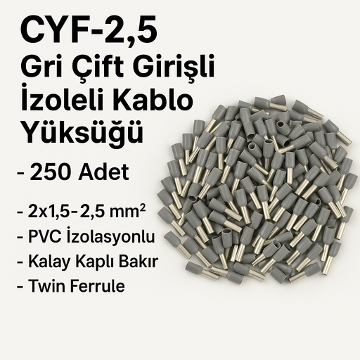 Tüm ayrıntıları görüntüleCYF-2,5 Gri Çift Girişli İzoleli Kablo Yüksüğü – 250 Adet