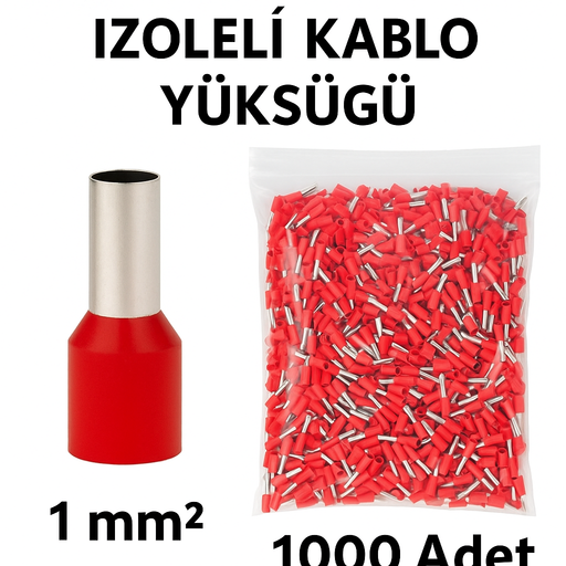 AYECOM🔌 İYF-1 Kırmızı İzoleli Kablo Yüksüğü – 1000 Adet | 1 mm² | PVC Yalıtımlı | Tekli Ferrule İYF-1 Kırmızı İzoleli Kablo Yüksüğü, 1 mm² kablo kesitin...