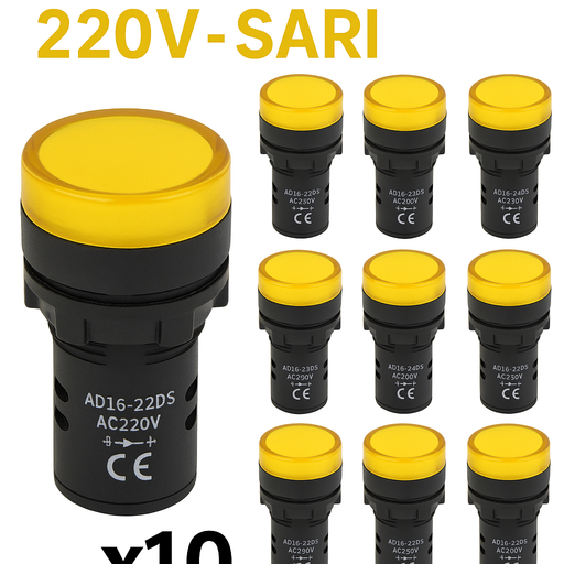 AYECOM🟡 22 mm Sarı LED’li Sinyal Lambası – 220V | 10 Adet | Panel Tipi | Gösterge Uyarı Işığı 22 mm Sarı LED Sinyal Lambası, elektrik panoları, otomasyo...